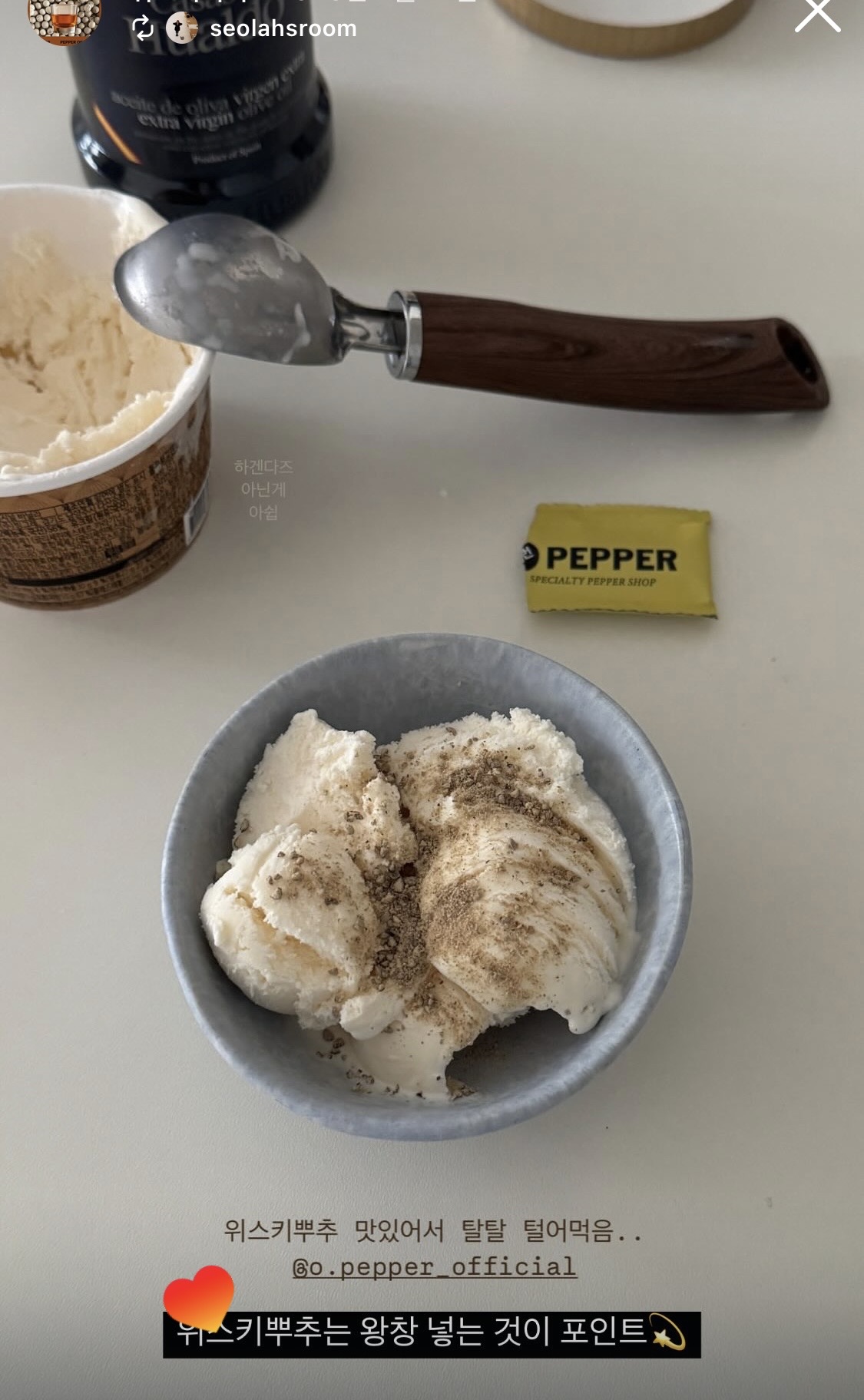 * 위스키 페퍼 : 플로럴한 마다가스카르 화이트 페퍼를 위스키에 침용하여 화이트 페퍼에 섬세한 위스키 향을 입혔습니다.