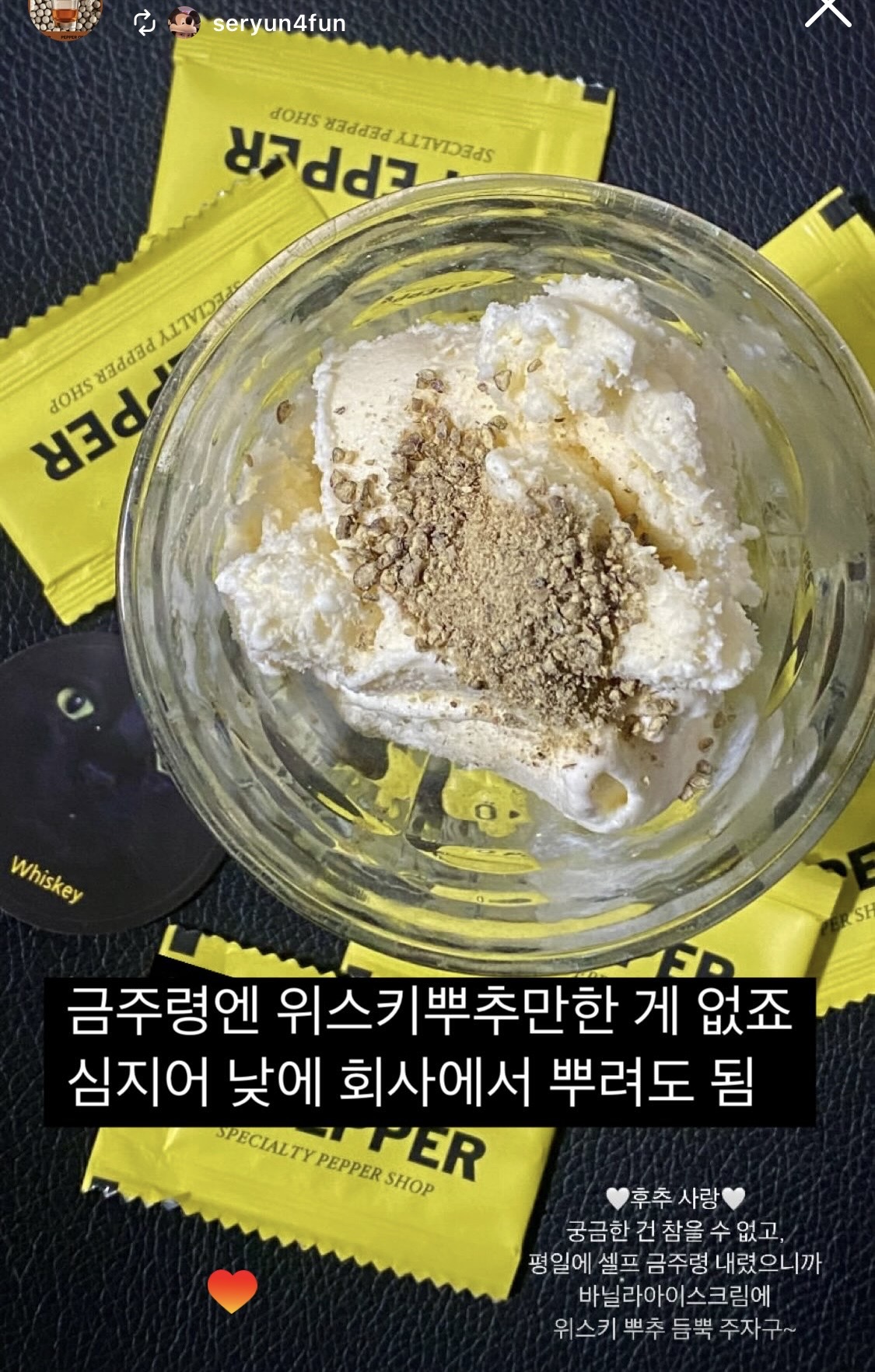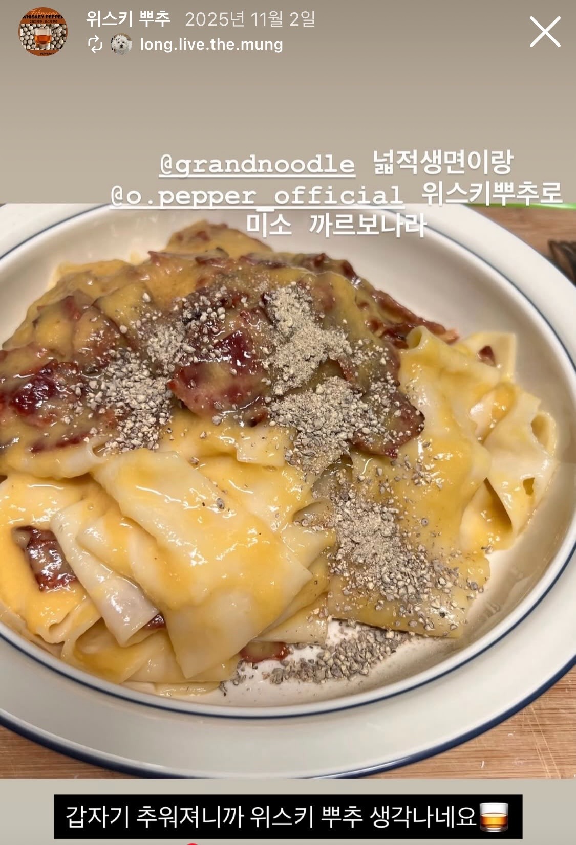 이 계절이 지나면 위스키와 후추의 만남이 어색해질 것 같아 계절감을 담은 위스키 뿌추를 기획하게 되었습니다.